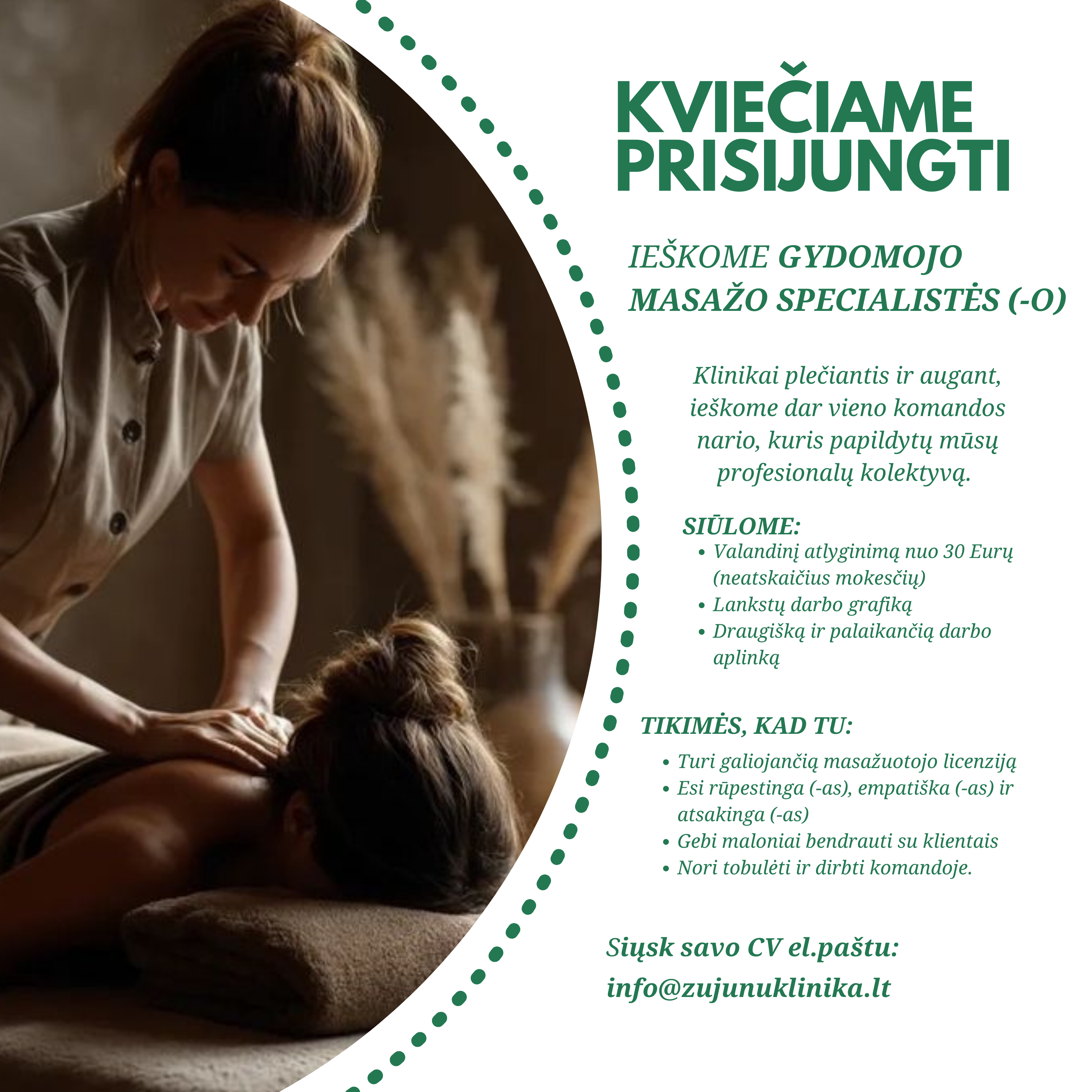 Siųsk savo CV el.paštu: info@zujunuklinika.lt